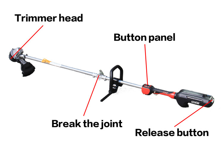 Motor profissional, potência de força. Baixo consumo, fácil de começar. Girando 360° Alça de controle confortável e cinto de esponja. A cabeça do aparador pode oferecer uma largura de corte d...