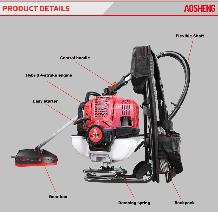 Motor de alto desempenho, cilindrada de 33CC. O uso profissional abre terreno baldio Tamanho do tubo 26 mm * 1,5 mm, eixo flexível de resistência. A largura de corte é 420mm Vida útil s...