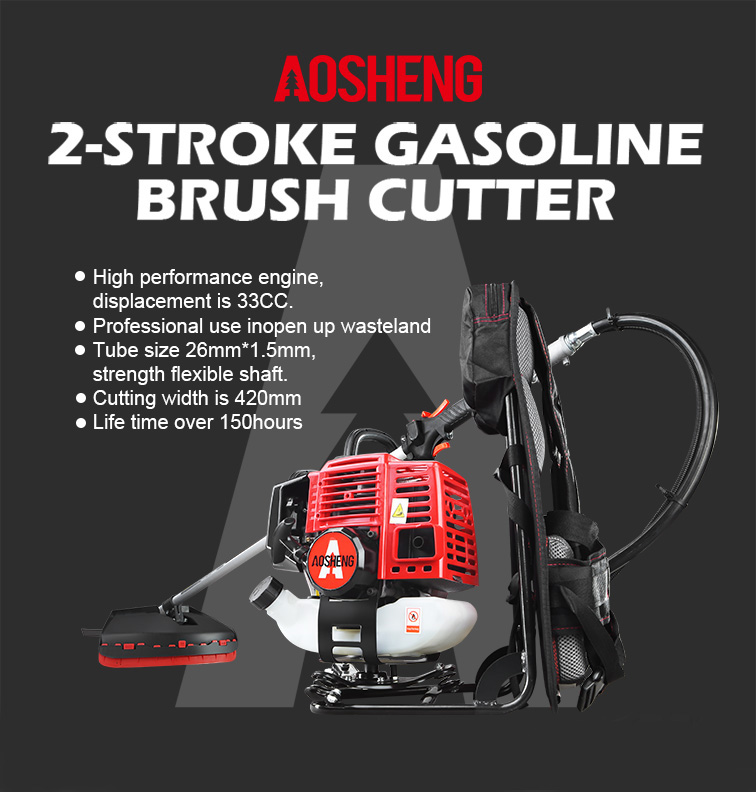 Motor de alto desempenho, cilindrada de 33CC. O uso profissional abre terreno baldio Tamanho do tubo 26 mm * 1,5 mm, eixo flexível de resistência. A largura de corte é 420mm Vida útil s...