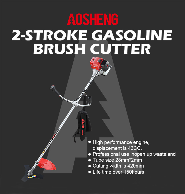 Motor de alto desempenho, cilindrada de 33CC. O uso profissional abre terreno baldio Tamanho do tubo 26 mm * 1,5 mm, eixo flexível de resistência. A largura de corte é 420mm Vida útil s...