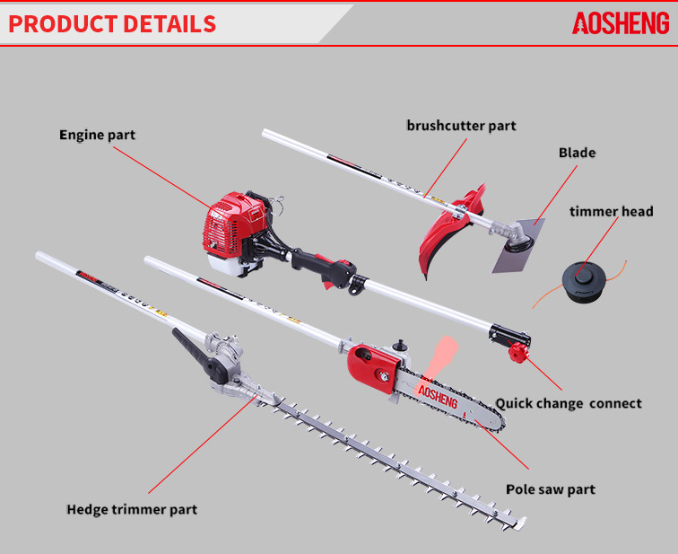 Motor de alto desempenho, cilindrada de 33CC. O uso profissional abre terreno baldio Tamanho do tubo 26 mm * 1,5 mm, eixo flexível de resistência. A largura de corte é 420mm Vida útil s...