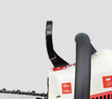 | 02DISPOSITIVO DE PROTEÇÃO DE FREIOA resposta do freio é sensível, melhora a segurança da operação. O guiador dianteiro e o guiador traseiro são unidos, com estrutura simples e firme. A pressão do dispositivo pode parar a motosserra. |