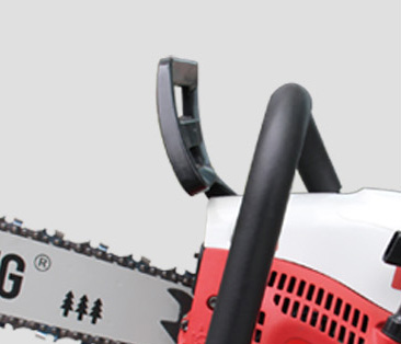 03DISPOSITIVO DE PROTEÇÃO DE FREIOA resposta do freio é sensível, melhora a segurança da operação. O guiador dianteiro e o guiador traseiro são unidos, com estrutura simples e firme. A pressão do dispositivo pode parar a motosserra. | |