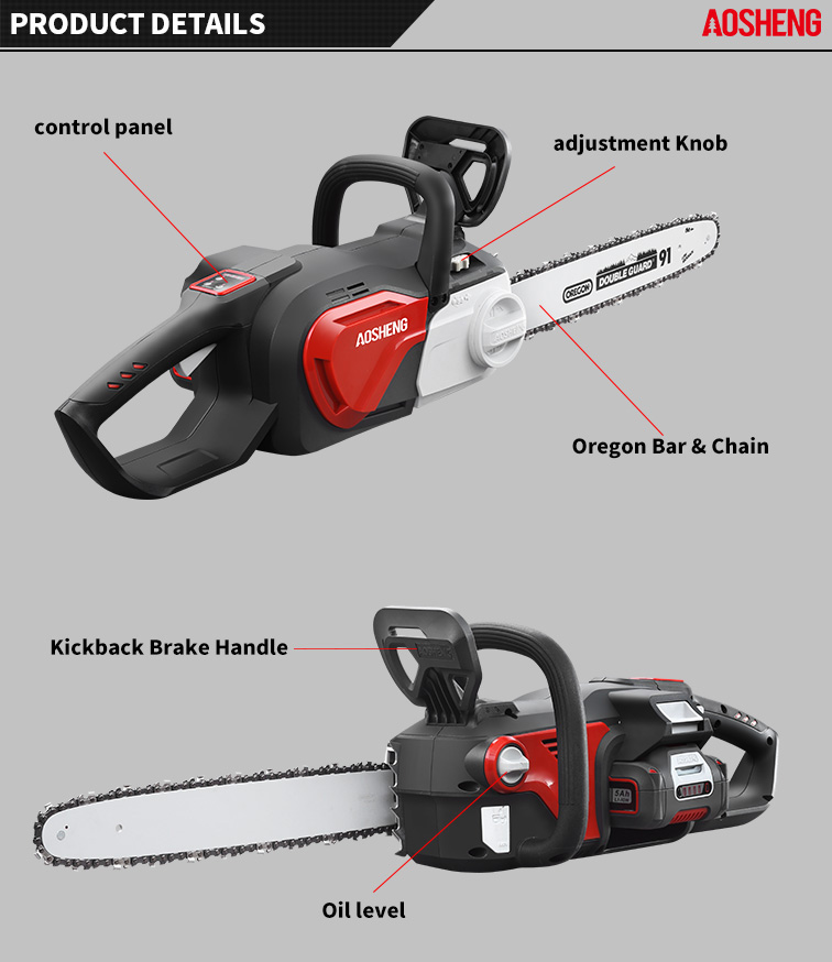 Altura de extensão de 400cm Bar e Rede Oregon Sistema de tensão de corrente sem ferramentas Sistema de lubrificação automática Opção de mochila para bateria extra